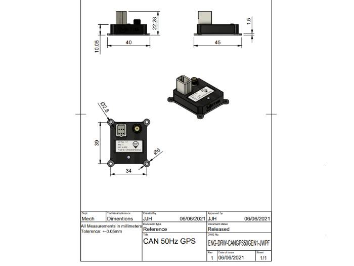 • 이 독립형 CAN 기반 GPS/GNSS 높은 위치 업데이트 속도 센서는 날짜 및 시간, 위도, 경도, 고도, 지상 코스 및 최대 50Hz의 속도를 출력하지만 40Hz는 더 나은 위치 성능을 제공합니다.
