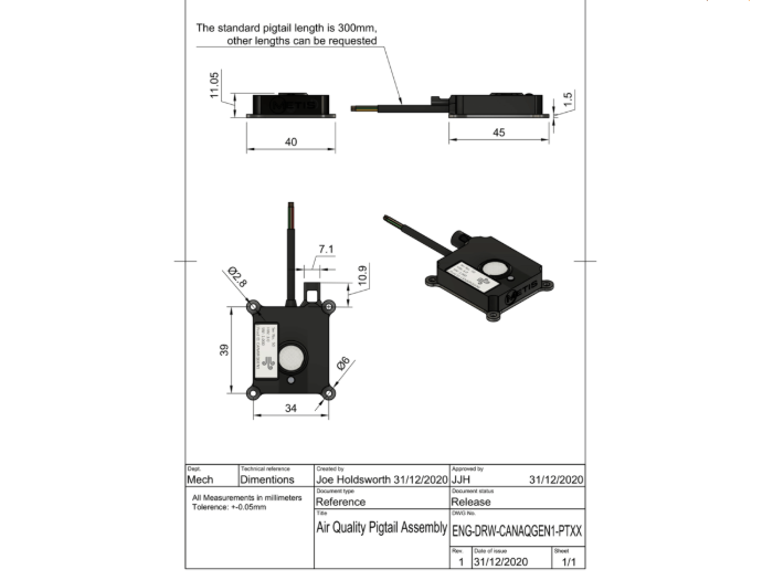 • 이 CAN 기반 공기질 센서는 다음을 측정합니다.