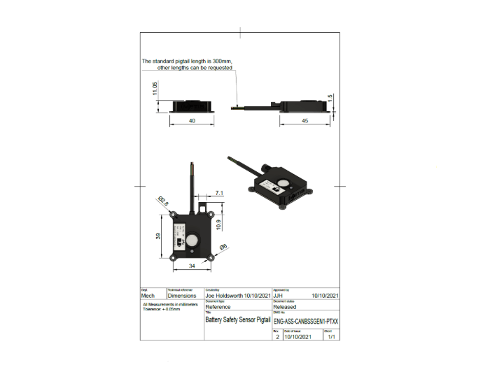 제공된 DBC 파일과 함께 구성 가능한 CAN 버스 속도 및 주소를 통해 CAN 버스가 있는 거의 모든 차량에 쉽게 통합할 수 있습니다. 이 센서는 배터리 시스템에서 셀 환기로 인한 조기 고장을 감지하는 데 사용할 수 있습니다.